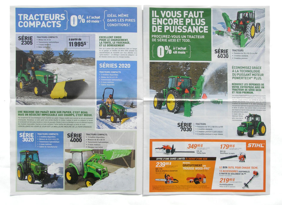 Voici une liste de nos services offerts; _IMPRIMÉ // dépliants, cartons postales, affiches, rapports annuels, brochures, livres, journaux, magazines, autocollants etc. _PUBLICITÉ // journaux et magazines, distribution, média-postes avec ou sans adresse _IMAGE DE MARQUE // identité visuelle, logo, signature, carte d’affaire et papeterie, enseigne, lettrage de véhicule, articles promotionnels _EMBALLAGE // habillage de boîte et de produit _INTERNET // site internet, bandeau flash, publicité et courriel personnalisés. Consultez notre portfolio pour un aperçu de notre travail et n’hésitez pas à demander une soumission.
